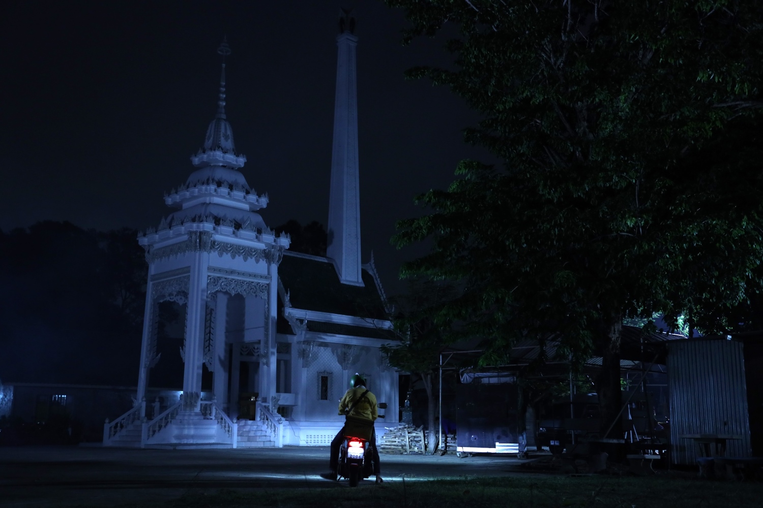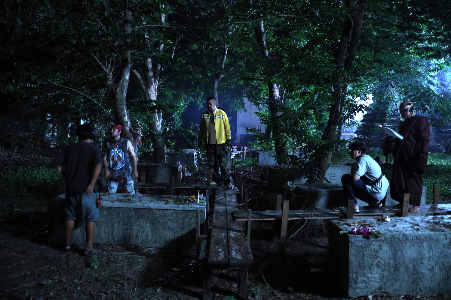 มันเหมือนจริงมากจนใครที่มาเจอต่างถามกันว่าอันนี้ของจริงไหม สภาพโลงศพเราก่อขึ้นมาวางเรียงกันไปในแนวป่า มีพวงมาลัย ศาล มีความรกร้าง และที่สำคัญคือมันคือป่าหลังโบสถ์บริเวณของวัดจริง ถึงจะบอกว่าเซตขึ้นมาแต่นักแสดงก็สงสัยกันตลอด อย่างที่ผมบอกพอบรรยากาศมันได้ ความกลัวจริงๆ ความรู้สึกของทุกคนก็มาเต็ม แล้วตอนที่ถ่ายฉากตรงนี้ก็ตี 1 ตี 2 เลย คงจะมีทั้งความง่วงและความกลัวปนกัน แต่ที่ประทับใจคือทีมนักแสดงเราสปิริตดีมากครับ ทั้งๆ ที่วันนั้น ‘พี่อาร์ต’ ถ่ายท้องหลายรอบ อาการไม่ค่อยจะสู้ดีเท่าไหร่ แต่ก็ผ่านกันมาได้ครับ” ผู้กำกับ “กังฟู นิติวัฒน์” เผยเบื้องหลังความหลอนทรหดของฉากนี้