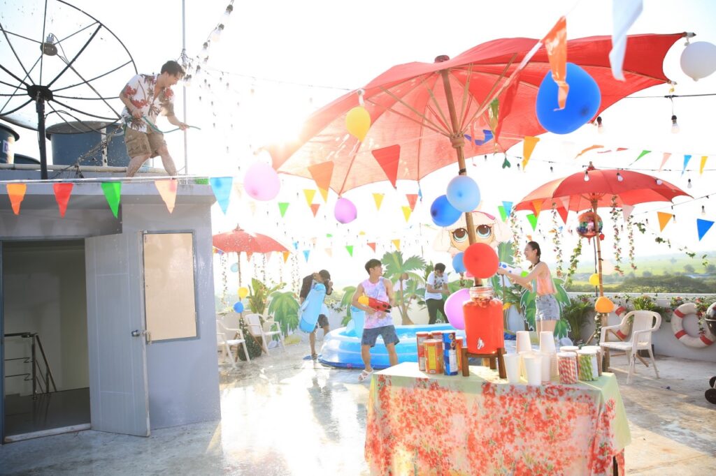 ฉากเบื้องหลังที่เก็บมาฝากนั้นเข้ากับช่วงสงกรานต์พอดิบพอดี ที่เหล่าชาวติดหอ ตรงกับช่วงสงกรานต์แต่เหตุต้องกักตัวไปไหนไม่ได้ เลยชวนกันออกมาเล่นสงกรานต์ กึ่งๆ สงกรานต์ทิพย์บนชั้นดาดฟ้าของหอพัก ที่สาดน้ำกันเองแค่ไม่กี่คนที่ติดช่วงกักตัวด้วยกัน ซึ่งครั้งนี้หลังจากที่มีเรื่องไม่เข้าใจกันมาหลายตอนระหว่างถาปัตย์ กับ คิมหันต์ มาถึงตอนนี้ก็ดูทั้งคู่จะเปิดใจกันมากขึ้น และหวานออกนอกหน้า จนเพื่อนๆ เริ่มเชียร์ให้ลงเอย ถาปัตย์เมื่อรู้หัวใจตัวเองก็ชอบคิมหันต์เหมือนกันก็เริ่มเปิดใจ ด้านคิมหันต์ที่งอนมาตลอดก็เริ่มเข้าใจถาปัตย์มากขึ้น ก็เลยได้ภาพหวานๆอย่างที่เห็นซึ่งเรื่องราวความรัก ความสัมพันธ์ของคู่นี้ถาปัตย์ กับ คิมหันต์นั้นเพิ่งเริ่มต้น เพราะยังมีความลึกลับ ของหอแห่งนี้ซ่อนอยู่อีก