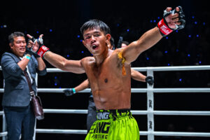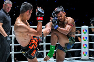 ต่อกันที่ “ทรงชัยน้อย” มวยร่างเล็กใจใหญ่ วัย 25 ปี เปิดศึกชิงยืดสถิติหรูไม่เคยแพ้ให้ใครกับ “ยอดนำชัย แฟร์เท็กซ์” ดาวรุ่งฟอร์มสด วัย 20 ปี จากชลบุรี ในกติกามวยไทย รุ่นอะตอมเวต (105-115 ป.) โดยหลังดูเชิงกันพอหอมปากหอมคอในยกแรก เกมเริ่มทวีความดุเดือดในช่วงต้นยก 2 เมื่อ “ทรงชัยน้อย” ปล่อยหมัดชุดสุดแม่นยำส่ง “ยอดนำชัย” ร่วงลงพื้นกลับมาสู้ต่อไม่ไหว ส่งให้ “ทรงชัยน้อย” ชนะน็อกแบบสวยสดงดงาม พร้อมกับยืดสถิติไร้พ่ายในรายการของ ONE เป็นไฟต์ที่ 8 พร้อมรับโบนัส 3.5 แสนบาท ได้เป็นครั้งที่ 5
