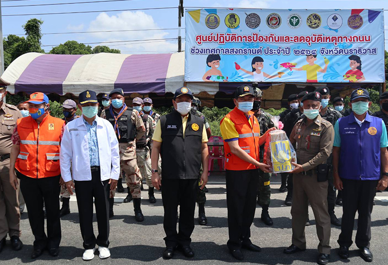 โดยรัฐมนตรีช่วยว่าการกระทรวงมหาดไทยได้ตรวจเยี่ยมจุดตรวจเพื่อป้องกันและลดอุบัติเหตุทางถนนช่วงเทศกาลสงกรานต์ 2564 จำนวน 4 จุด ประกอบด้วย จุดตรวจหน้าโรงเรียนบ้านบาตูเขตเทศบาล ต.ต้นไทร อ.บาเจาะ, จุดตรวจบริเวณ ปตท.ปลักปลา ต.ลำภู อ.เมือง, จุดตรวจสามแยกยูงทอง ต.พร่อน อ.ตากใบ และจุดตรวจแยกบ้านน้ำตกเขตเทศบาลเมืองสุไหงโก-ลก อ.สุไหงโก-ลก พร้อมมอบสิ่งของเครื่องใช้ที่จำเป็นในการปฏิบัติงานเพื่อเป็นขวัญและกำลังใจ