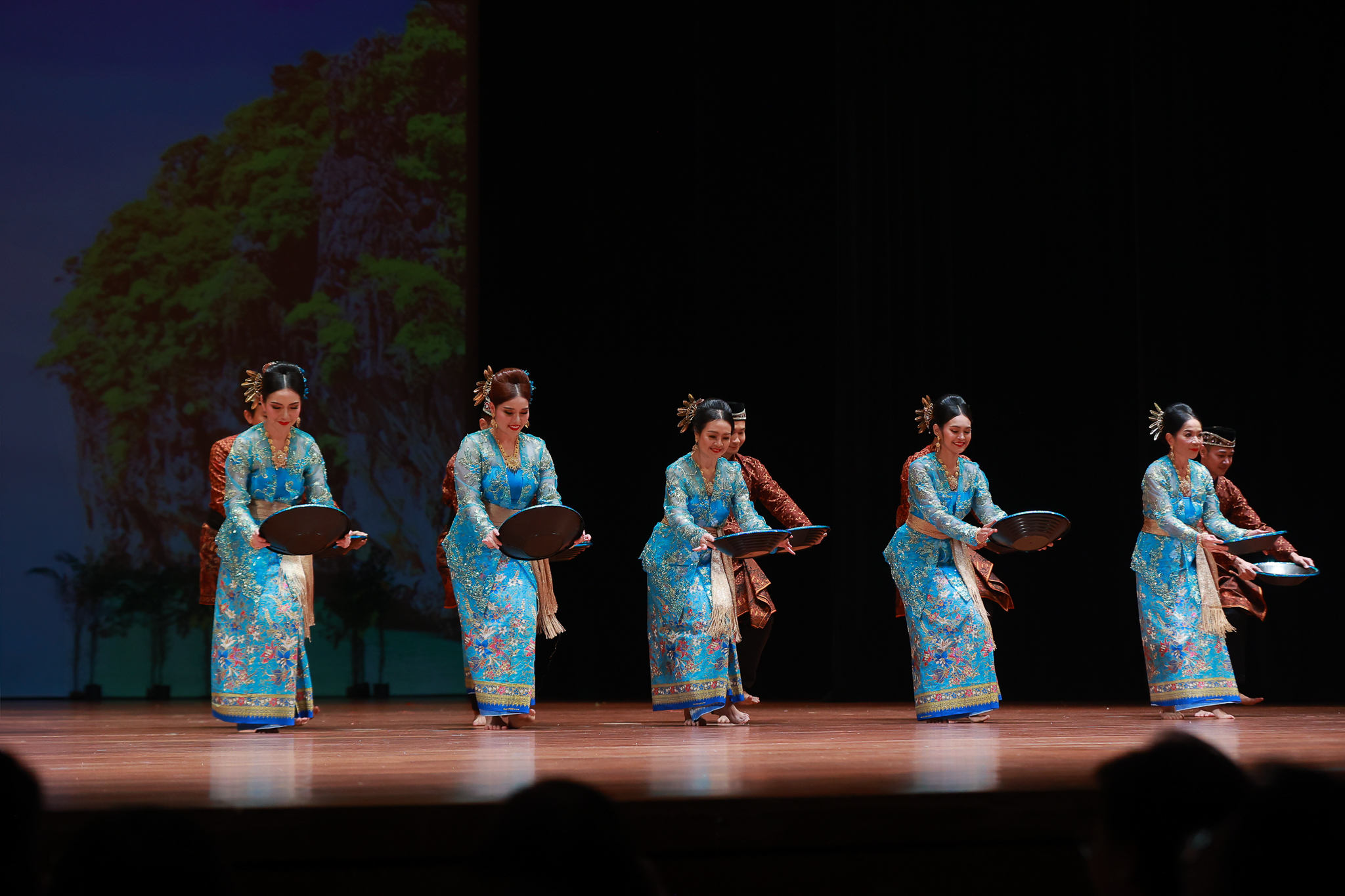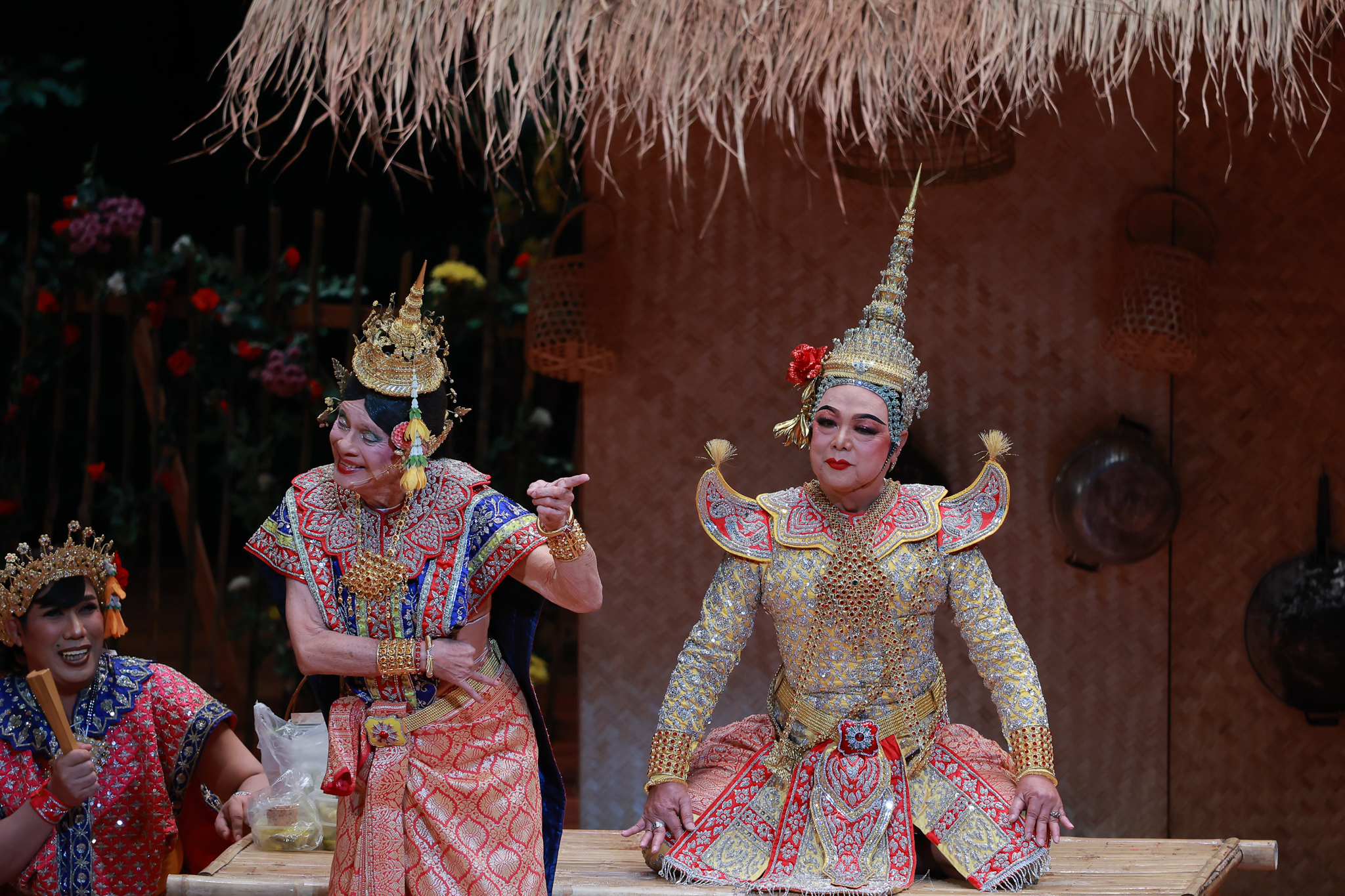 ช่วงแรกเป็นรำถวายพระพร “ ๗๒ เกริกไกร เทิดไท้เหนือเกล้า เจ้าไผทสยาม “ และการแสดงละครนอก เรื่องสังข์ทอง ตอน มณฑาลงกระท่อม ซึ่งละครนอกจะใช้นักแสดงเป็นผู้ชายล้วน โดยมีศิลปินแห่งชาติร่วมแสดง จำนวน 3 ท่านร่วมแสดงและขับร้องเพลงคือ พ่ออี๊ด สุประวัติ ปัทมสูต ศิลปินแห่งชาติ สาขาศิลปะการแสดง ประจำปี พ.ศ. 2553 แสดงเป็นนางมณฑา นายไพฑูรย์ เข้มแข็ง ศิลปินแห่งชาติ ศิลปินแห่งชาติ สาขาศิลปะการแสดง (นาฏศิลป์ไทย – โขน ละคร) ประจำปีพุทธศักราช 2564 แสดงเป็นพระสังข์ ดร.ศุภชัย จันทร์สุวรรณ์ ศิลปินแห่งชาติ สาขาศิลปะการแสดง (นาฏศิลป์) ประจำปีพ.ศ. 2548 แสดงเป็นนางรจนา พร้อมศิลปินจากกรมศิลปากร ศิลปินรับเชิญ และนักแสดงจากชมรมนาฏศิลป์และดนตรีไทย ในมูลนิธืสมาคมสตรีอุดมศึกษา ฯ