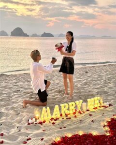 แฟนคลับแห่ยินดีล้นหลาม !”จูเนียร์” คุกเข่าขอ “เทนนิส” แต่งงานริมทะเล