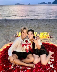 แฟนคลับแห่ยินดีล้นหลาม !”จูเนียร์” คุกเข่าขอ “เทนนิส” แต่งงานริมทะเล