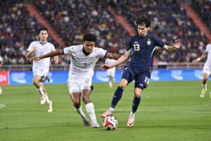 ช่วงต่อเวลา นาทีที่ 96 ไทย มีโอกาสลุ้นทำประตูเพิ่ม วรชิต กนิตศรีบำเพ็ญ จ่ายบอลต่อมาให้ อัครพงศ์ พุ่มวิเศษ ได้ยิงด้วยขวาหน้ากรอบเขตโทษ บอลลอยข้ามคานออกไป