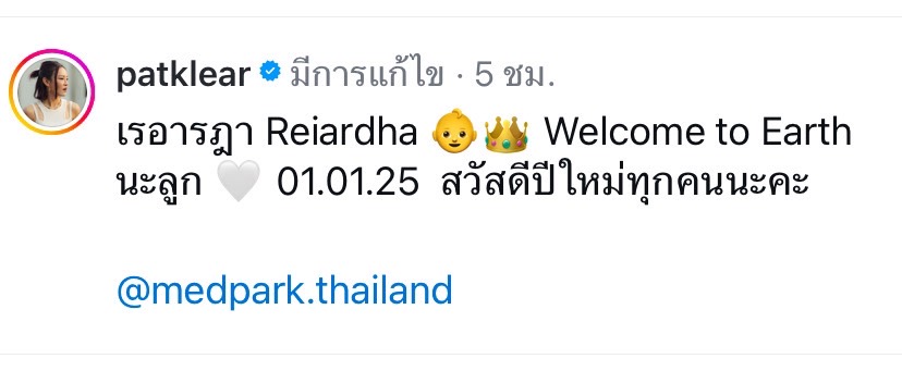 “เรอารฎา Reiardha Wy Welcome to Earthนะลูก 01.01.25 สวัสดีปีใหม่ทุกคนนะคะ”