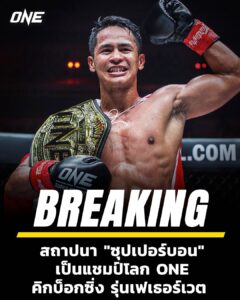สำหรับ “ซุปเปอร์บอน” ก่อนหน้านี้ครองตำแหน่งเป็นเจ้าของบัลลังก์คิกบ็อกซิ่ง รุ่นเฟเธอร์เวต เฉพาะกาล โดยได้เข็มขัดมาครอง จากการเอาชนะคะแนน “มารัต กริกอเรียน” จอมอึดจากอาร์เมเนีย ในศึก ONE ลุมพินี 58 เมื่อเดือน เม.ย.67 ก่อนที่ล่าสุด ONE จะประกาศให้ “จอมเตะก้านคอจากพัทลุง” นั่งบัลลังก์แชมป์โลกของรุ่นนี้อย่างเป็นทางการ