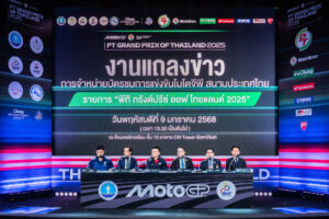 การแถลงข่าวการจัดการแข่งขันและเปิดจำหน่ายบัตร ศึกรถจักรยานยนต์ทางเรียบชิงแชมป์โลก “โมโตจีพี” ที่ประเทศไทยเป็นเจ้าภาพ สนามที่ 1 ของฤดูกาล รายการ PT Grand Prix of Thailand 2025 (พีที กรังด์ปรีซ์ ออฟ ไทยแลนด์) ที่ไทยได้รับบทบาทสำคัญ ทั้ง การแถลงเปิดฤดูกาล Season Premier ที่ One Bangkok กรุงเทพ โดยดอร์น่าสปอร์ต วันที่ 9 ก.พ. ต่อด้วย Pre-Season Test 12-13 ก.พ.และ Main Race 28 ก.พ.-2 มี.ค.68 ที่สนามช้าง อินเตอร์เนชั่นแนล เซอร์กิต จ.บุรีรัมย์ โดยประเทศไทยเป็นเจ้าภาพปีที่ 6