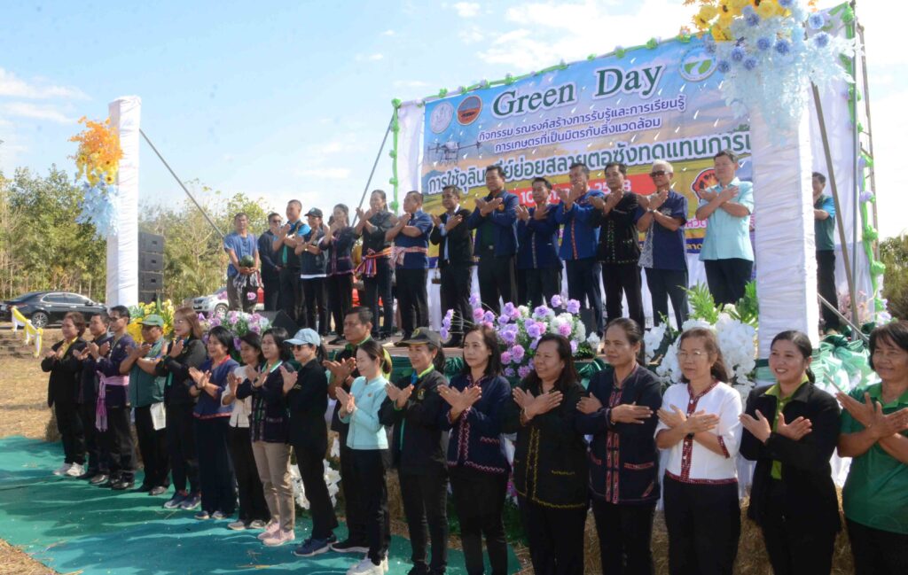 ที่แปลงสาธิตนางธนาพร ภูยาดาว บ้านดอนยานาง หมู่ที่ 6 ต.ดอนสมบูรณ์ อ.ยางตลาด จ.กาฬสินธุ์ นายสนั่น พงษ์อักษร ผวจ.กาฬสินธุ์ เป็นประธานเปิดงานรณรงค์สร้างการรับรู้ และการเรียนรู้การเกษตรที่เป็นมิตรกับสิ่งแวดล้อม (Green Day) ซึ่งสำนักงานเกษตร จ.กาฬสินธุ์ บูรณาการร่วมกับหน่วยงานสังกัดกระทรวงเกษตรฯ สำนักงานทรัพยากรธรรมชาติและสิ่งแวดล้อม จ.กาฬสินธุ์ และหน่วยงานที่เกี่ยวข้องทุกภาคส่วนจัดขึ้น เพื่อเสริมสร้างความรู้ ความเข้าใจให้เกษตรกรได้ตระหนัก ถึงผลกระทบจากการเผา และนำเสนอทางเลือกในการใช้เทคโนโลยีการเกษตรทดแทนการเผาที่เหมาะสมกับพื้นที่