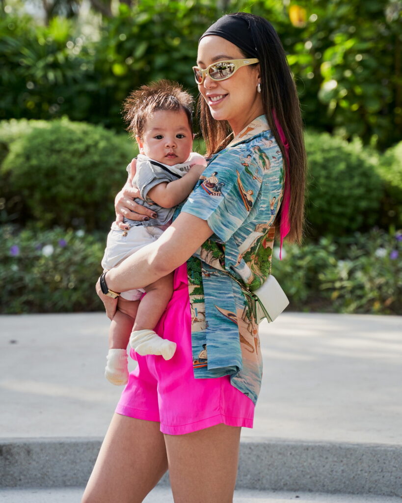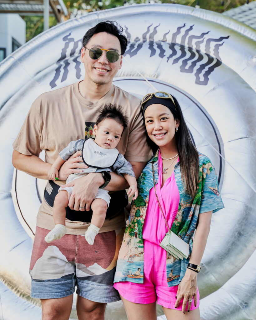 งานนี้ สาวพลอย มาในลุคชิคๆ เสื้อ Thaiwaiian เกาะสวรรค์ แมตช์กับกางเกงขายาว CHAO LE PANTS สีขาว ส่วนคุณแม่มือใหม่ แอริน ยุกตะทัต นำเสื้อ Thaiwaiian เกาะสวรรค์ มาใส่เป็นเสื้อคลุมให้ลุคเก๋ๆ อีกสไตล์ ฟากสาวแยม มาในโททัลลุคสีขาว กับเสื้อเชิ้ต SIE KOH PEARL แมตช์กับกางเกงขายาวสีขาวเข้าเซต เหมาะกับทริปเที่ยวทะเลสุดๆ