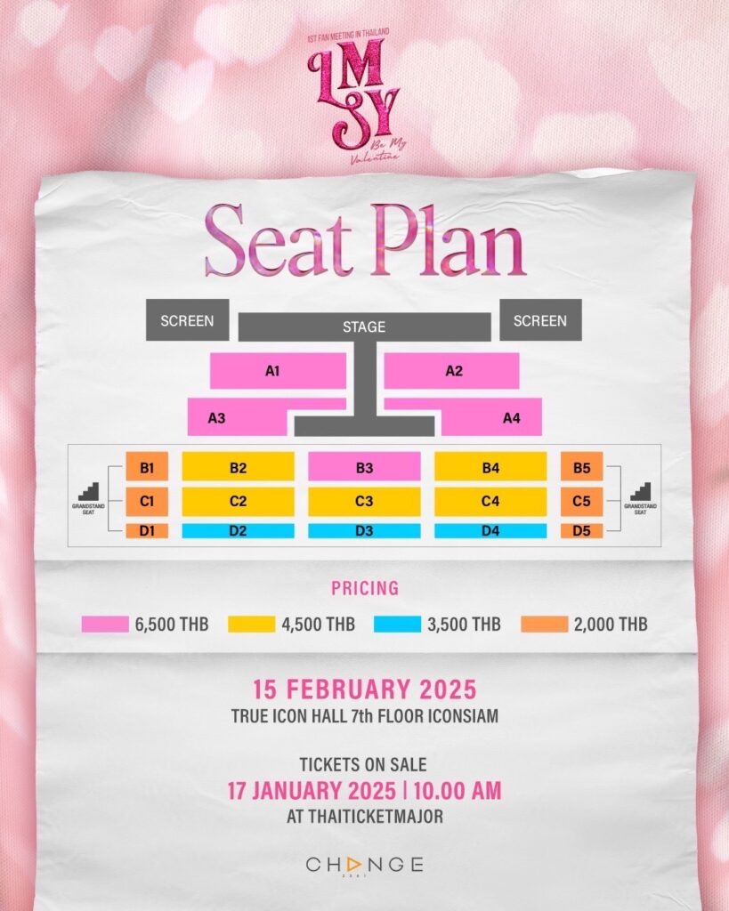 เตรียมกดบัตรและฟิตร่างกาย เตรียมหัวใจให้แข็งแรง เพราะงานนี้จะได้ใจเต้นแรงไปกับทุกโมเมนต์ของลูกหมี-ซอนญ่า เปิดขายบัตรวันที่ 17 มกราคมนี้ เป็นต้นไป ผ่านทาง THAITICKETMAJOR https://www.thaiticketmajor.com/performance/lmsy-1st-fan-meeting-in-thailand-be-my-valentine.html บัตรราคา 6,500 , 4,500 , 3,500 และ 2,000 จับจองบัตรกันให้ได้ แล้วมาพบกันวัน เสาร์ ที่ 15 กุมภาพันธ์ นี้ ที่ TRUE ICON HALL @ICON