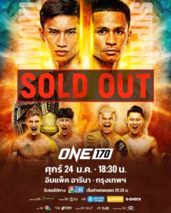 สร้างปรากฏการณ์ร้อนแรงเกินต้าน สำหรับศึก ONE 170 ที่เตรียมยกทัพหวนกลับมาสร้างความเร้าใจเต็มขั้นที่ อิมแพ็ค อารีนา เมืองทองธานี ในวันศุกร์ที่ 24 ม.ค.68 ซึ่งล่าสุด บัตรเข้าชมการแข่งขันหมดเกลี้ยงทุกที่นั่งเป็นที่เรียบร้อย