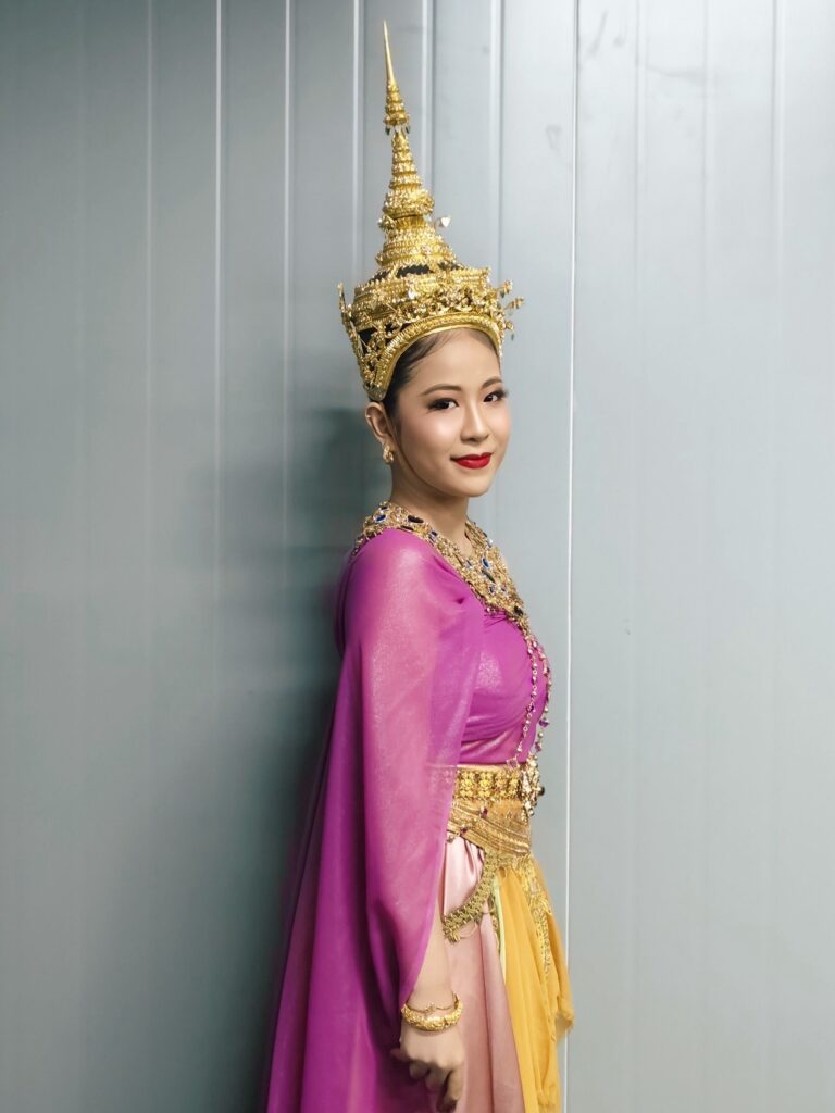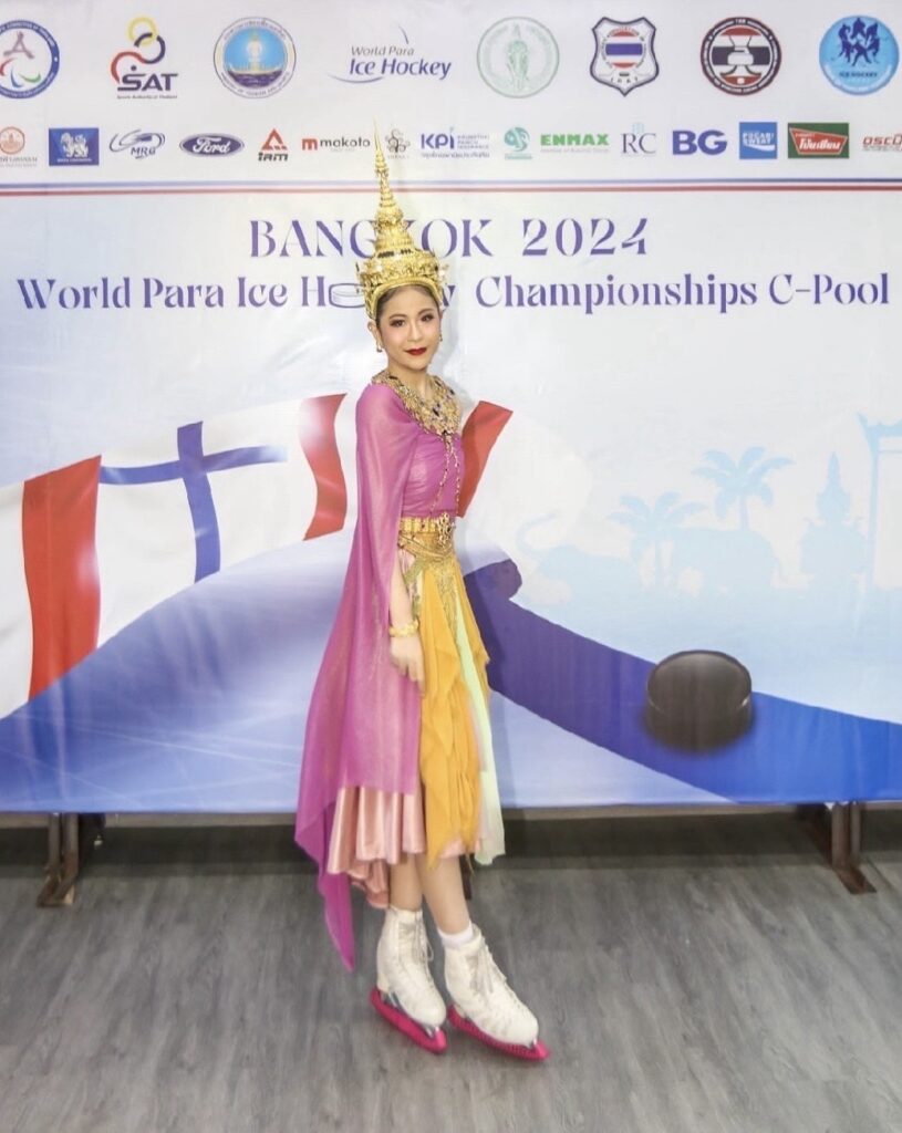 ตอนซ้อมไม่ได้คิดอะไรเลยค่ะ แต่พอเห็นชุดที่ใส่และชฎาที่มันหนักมากเริ่มท้อแล้วค่ะว่าเราจะสปินได้ไหมเนื่องจากว่าต้องใส่ชุดไทยซึ่งมีสไบยาว คือชุดไทยที่ต้องใส่แตกต่างจากชุดสเก็ตที่บางเบาทำให้เราเคลื่อนไหวสปินได้อย่างคล่องแคล่วค่ะ แต่หนูก็สปินได้ค่ะ แต่อาจจะไม่เหมือนตอนใส่ชุดสเก็ต และครั้งนี้หนูได้ร่วมแสดงกับอาจารย์จากคณะโขนไทย ซึ่งเป็นครั้งแรกที่หนูเห็นการแสดงโขนไทยเลยค่ะ