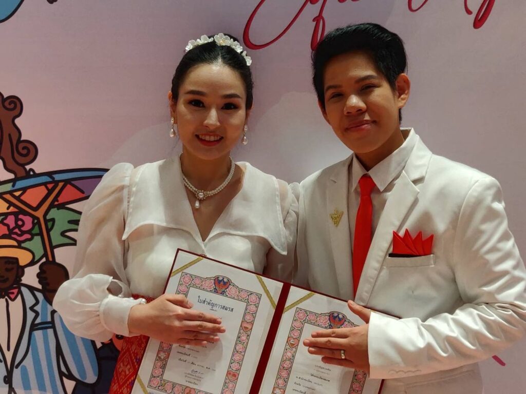 โดยภายในงานเต็มไปด้วยความรักและความยินดีของคู่สมรสที่จะได้มีสิทธิ์ต่าง ๆ คุ้มครองตามกฎหมาย เช่นคู่สมรส ของนางสาวพลอยนภัส จิราสุคนธ์ หรือพัช และนางสาวขวัญพร กงเพ็ชร หรือเก๋ ซึ่งเป็นคู่แรกที่จะจดทะเบียนสมรสเท่าเทียมในวันนี้ เปิดเผยพร้อมรอยยิ้มว่ารู้สึกตื้นตันใจ เป็นนิมิตหมายในการสร้างครอบครัวที่สมบูรณ์ สามารถดูแลกันและกันได้ดีขึ้น