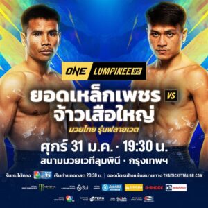 เปิดโฉมคู่มวยเตรียมระเบิดความมันในศึก ONE ลุมพินี 95 ที่จะจัดขึ้น ณ สนามมวยเวทีลุมพินี (รามอินทรา) ในวันศุกร์ที่ 31 ม.ค.68 โดยประกบสองนักชกสายบวกตัวตึงของรายการระหว่าง “ยอดเหล็กเพชร อ.อัจฉริยะ” ยอดมวยสายแข็งวัย 30 ปี จากร้อยเอ็ด และ “จ้าวเสือใหญ่ ม.กรุงเทพธนบุรี” มวยหนุ่มอาวุธแน่น วัย 23 ปี จากเมืองกรุง จะมาเผชิญหน้ากัน ในกติกามวยไทย รุ่นฟลายเวต (125-135 ป.) เป็นคู่เอกของรายการนี้