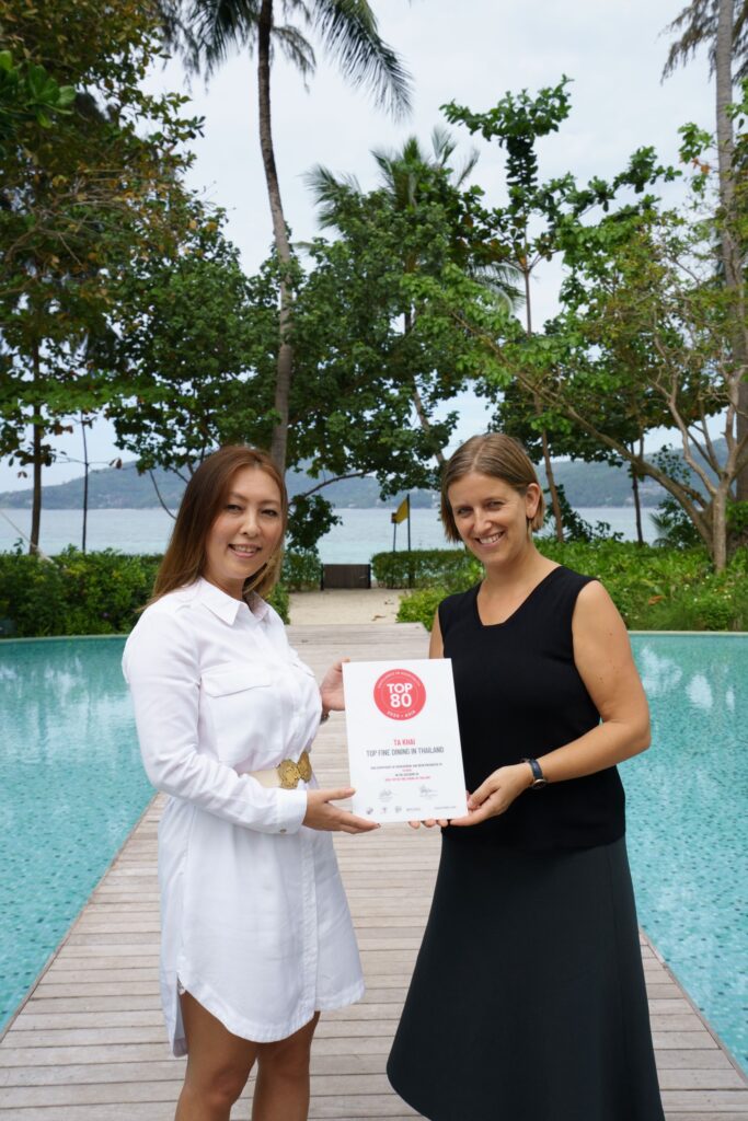 รางวัล Top Find Dining in Thailand 2020 : ห้องอาหาร Ta Khai, Rosewood Hotel Phuket (รับมอบรางวัลโดย คุณSandra Watermann, Hotel Manager)