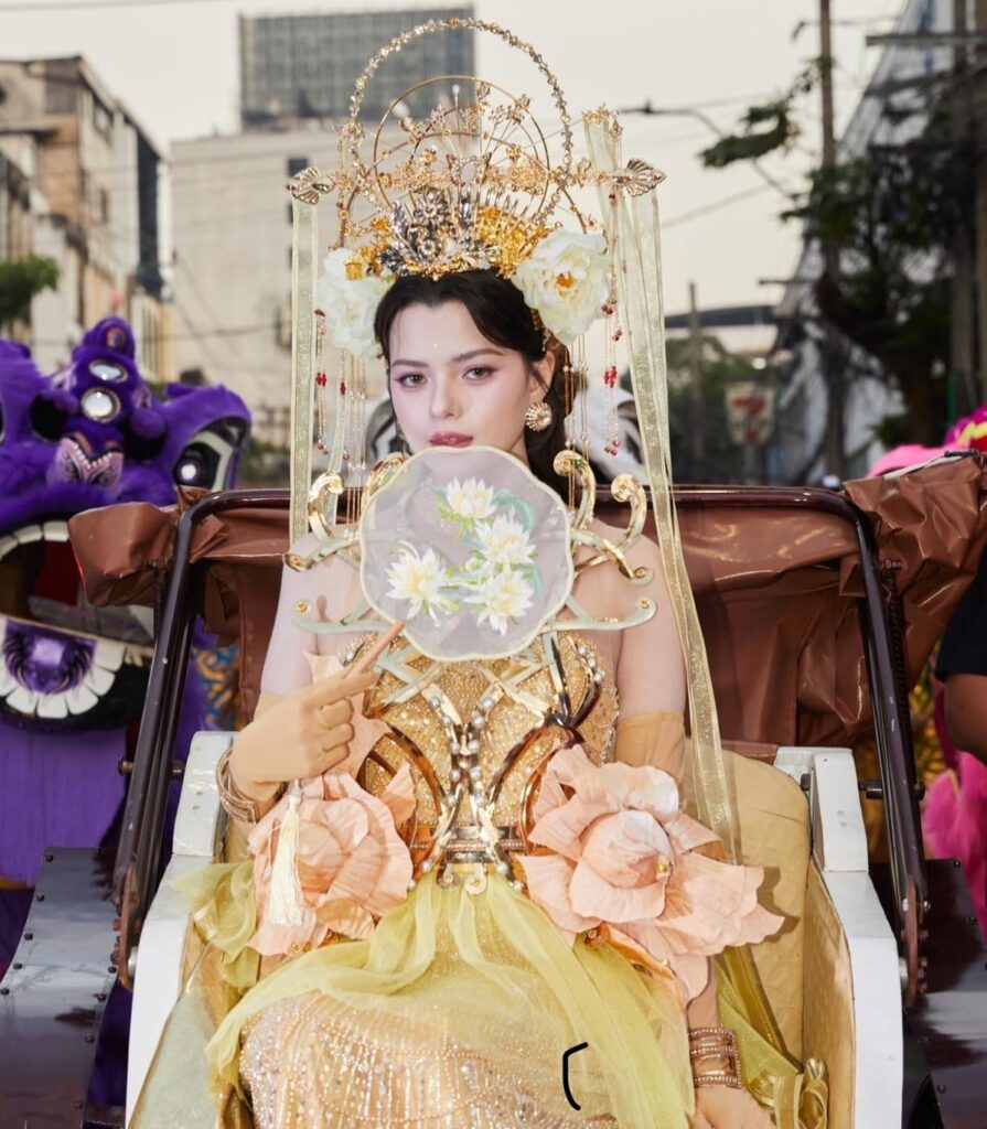 ปิดท้ายกันนักแสดงสาวสวย “เบ็คกี้ รีเบคก้า“ สาวน้อย ล้านเสน่ห์ ที่ตรุษจีนปีนี้เจ้าตัวมาในธีมเทพธิดา ในชุด สีทองอร่าม จัดเต็มเครื่องหน้าผมพร็อป ได้แบบอลังการ ทำให้องค์ประกอบรวมสวยเป๊ะลงตัวสุดๆ