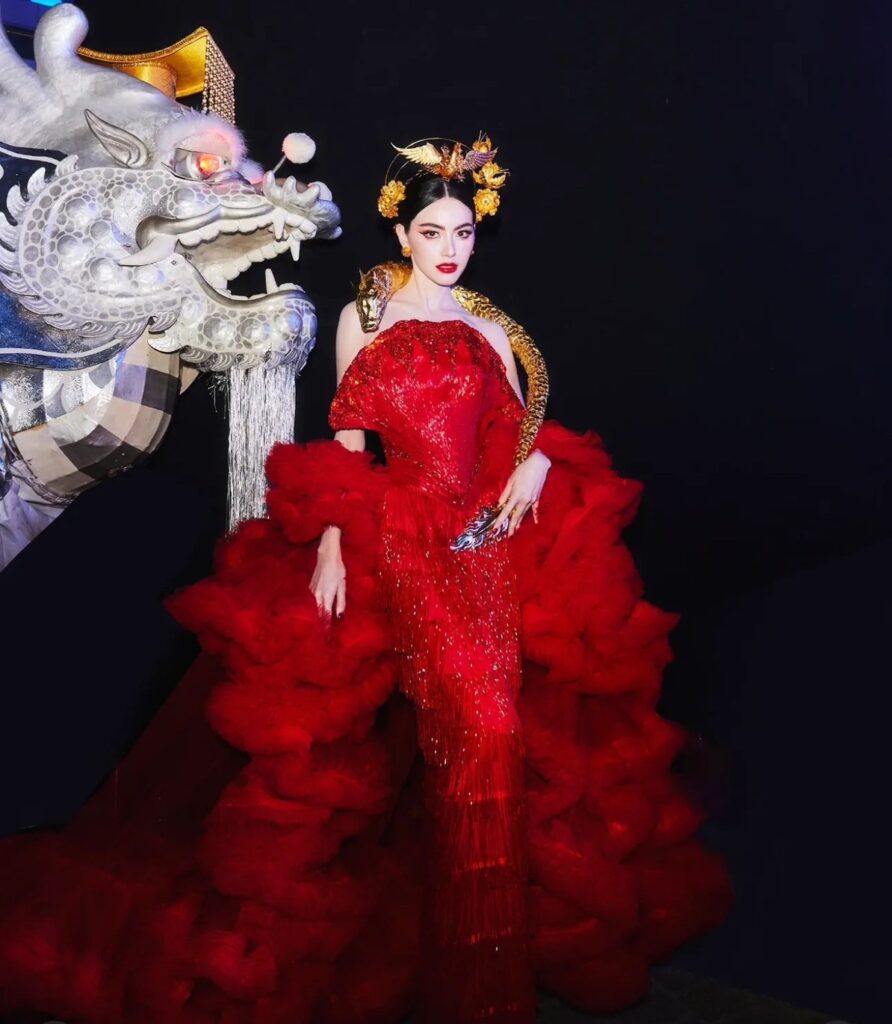 ไปต่อกันที่นักแสดงสาว ”มิ้ลค์ พรรษา“ ที่ต้องบอกเลยว่าสวยเผ็ดรับตรุษจีนมาก โดยสาว ”มิ้ลค์” มาด้วยกันสองลุค โดยลุคแรกเป็นเสื้อสีทองที่มีความทรงพลัง และอีกลุคกับสีแดงดำ ที่มีแซ่บ แบบเฟี้ยสๆ บอกเลยว่าสวยเฮงรับตรุษจีนทั้งสองลุคเลย