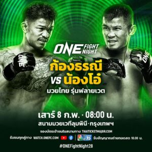 “ก้องธรณี ส.สมหมาย” ซ้ายเฉียบคม วัย 28 ปี จากเพชรบูรณ์ โชว์ความฟิตต่อหน้าสื่อมวลชน ก่อนเปิดศึกดวลฝีมือกับ “น้องโอ๋ ฮาม่ามวยไทย” อดีตแชมป์โลก ONE มวยไทย รุ่นแบนตัมเวต (135-145 ป.) ที่จะลดน้ำหนัก มาขึ้นชกในรุ่นฟลายเวต (125-135 ป.) เป็นครั้งแรก ในศึก ONE Fight Night 28 ที่จะถ่ายทอดสดจากสนามมวยเวทีลุมพินี (รามอินทรา) ในช่วงไพรม์ไทม์อเมริกา ซึ่งตรงกับช่วงเช้าเวลา 08:00 น. ในวันเสาร์ที่ 8 ก.พ.68