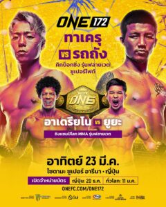 สำหรับ ศึก ONE 172 ซึ่งกำหนดจัดขึ้นในวันอาทิตย์ที่ 23 มี.ค.68 ที่สนามไซตามะ ซูเปอร์ อารีนา ประเทศญี่ปุ่น