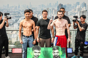 ด้าน 4 ตัวแทนนักกีฬาชาวไทยที่ได้ลงแข่งขันในศึกนี้กอดคอกันผ่านตาชั่งฉลุย โดย “ก้องธรณี ส.สมหมาย” ชั่งได้ 135 ป. ระดับน้ำ 1.0164 ขณะที่ “น้องโอ๋ ฮาม่ามวยไทย” ชั่งได้ 134 ป. ระดับน้ำ 1.0112 ส่วน เสมาเพชร แฟร์เท็กซ์ ชั่งได้ 144.25 ป. ระดับน้ำ 1.0152 และ อาลีฟ ส.เดชะพันธ์ ชั่งได้ 127 ป. ระดับน้ำ 1.0152