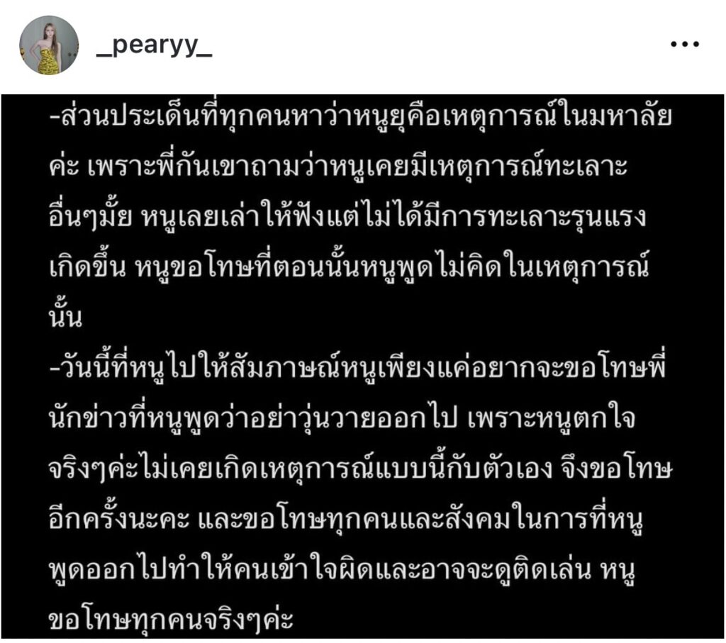 ขณะเดียวกันได้มีการเปิดรายชื่อผู้ก่อเหตุ ซี่งหนึ่งในนั้น มีชื่อ “แพร” Miss Teen Trans Thailand ตัวแทนจังหวัดเพชรบุรี เวทีต้นแบบ เด็กเยาวชนหลากหลายทางเพศ ที่มีจิตอาสาและจิตสาธารณะเวทีแรกของประเทศไทย ต่อมาทางด้าน “แพร” ก็ออกมาขอโทษ ถึงประเด็นดราม่าดังกล่าว ไม่มีเจตนาที่ตั้งใจตะโดนด่า และยืนยันไม่ใช่คนยุยงให้สาดน้ำร้อนแต่ตนเป็นคนห้ามด้วยว่าอย่าทำ