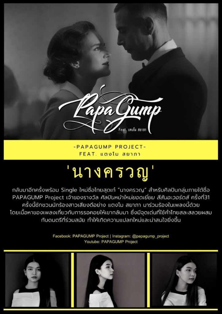 ถือเป็นการกลับมาอีกครั้งของสาวน้อยเสียงสวย “แตงโม สยาภา สิงห์ชู” หรือ (แตงโม เดอะวอยซ์) ในเพลงไทยสุดเก๋ “นางครวญ” ที่ครั้งนี้ มาร่วมฟีทเจอริ่งกับทีมศิลปินกลุ่มภายใต้ชื่อ PAPAGUMP Project (ปาปากัมพ์ โปรเจค) เจ้าของรางวัล ศิลปินหน้าใหม่ยอดเยี่ยม สีสันอะวอร์ดส์ ครั้งที่ 31 ที่ได้ชักชวนสาวแตงโมมาร่วมถ่ายทอดอารมณ์ของการรำพึงรำพันถึงคนรักด้วยความคิดถึง และการรอคอยให้เขากลับมา ซึ่งมีจุดเด่นที่ใช้คำไทยสละสลวย ผสมกับดนตรีที่ร่วมสมัย ทำให้เกิดความแปลกใหม่และน่าสนใจยิ่งขึ้น พร้อมด้วยเอ็มวีสไตล์วินเทจ ที่เหมือนกับกำลังชมภาพยนตร์ในอดีตผ่านแผ่นฟิล์ม จนได้รับการตอบรับที่ดีเกินคาด
