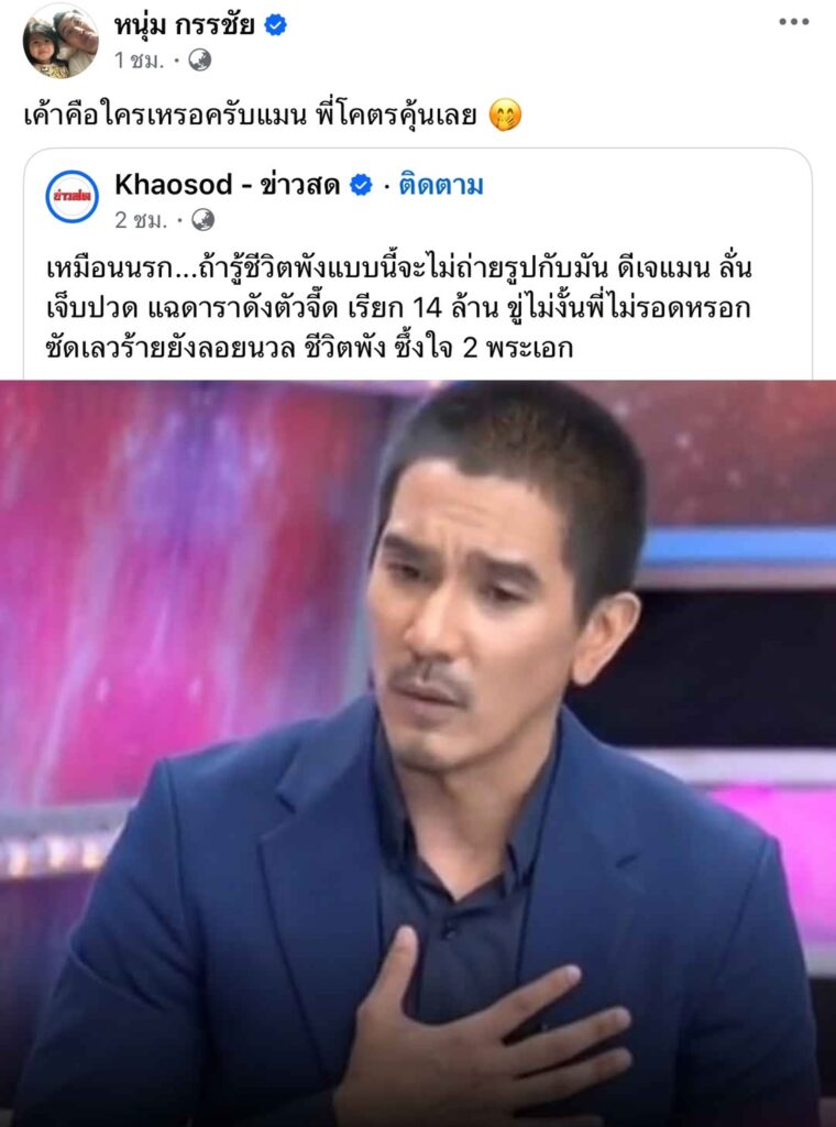 “ดีเจแมน” เคลื่อนไหว! แฉดาราไถเงิน14ล้าน เพื่อแลกอิสระภาพ แต่ฟังก็รู้ว่าเป็นใคร ทางด้าน “หนุ่ม กรรชัย” ออกมาแชร์ พร้อมกับร้อง อุ๊ยตั่ยแล้วววว!