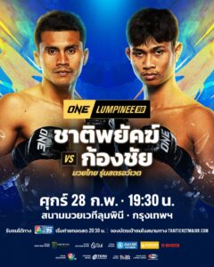 ศึกครั้งนี้เป็นการพบกันระหว่าง 2 นักสู้ผู้สะกดคำว่าถอยไม่เป็น ซึ่ง “ชาติพยัคฆ์” จะสามารถสานต่อสถิติไร้พ่ายไฟต์ที่ 6 และขยับเข้าใกล้การคว้าสัญญานักกีฬา ONE ไปอีกขั้น หรือจะเป็น “ก้องชัย” ที่คืนฟอร์มเก่งคว้าแต้มชัยไฟต์ที่ 8 ให้กับตัวเองได้สำเร็จ แฟนมวยทั่วประเทศร่วมลุ้นไปพร้อมกันในศึก ONE ลุมพินี 98 วันศุกร์ที่ 28 ก.พ.นี้