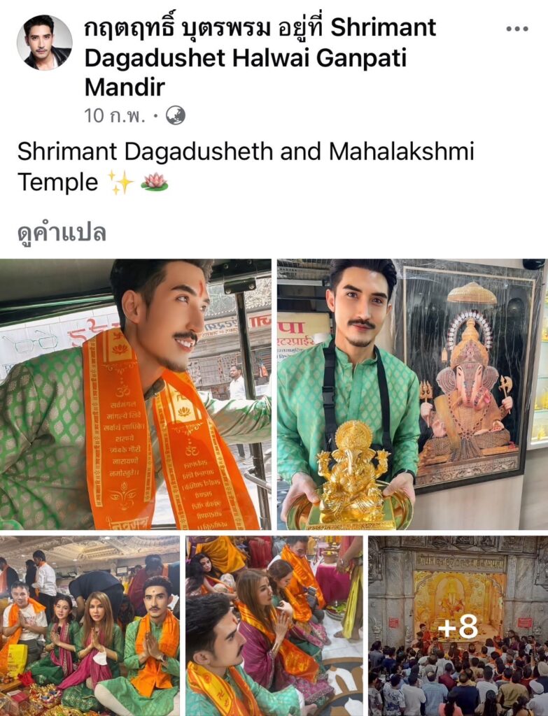 ลงเฟซบุ๊ค แอบบินไปมูเตลูแบบชุดใหญ่ไฟกระพริบที่ประเทศอินเดีย สังเกตุจากสีหน้าของพระเอกหนวดสวยกล้ามเป็นมัดๆ แลดูผ่องบุญสดใสออร่าวิ้งซะเหลือเกิน ท่าทางคงจะโกยพลังบุญเติมพลังปังยัดใส่กระเป๋ากลับประเทศไทยซะแน่นปึ๊ก