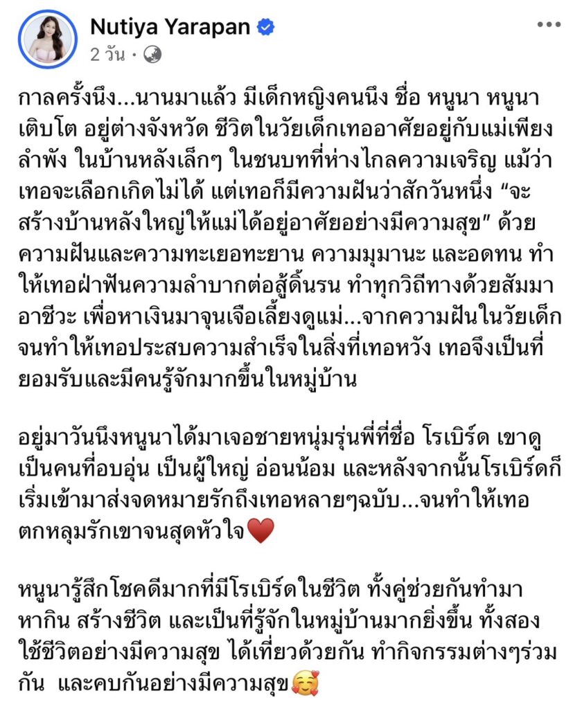 ถือว่าเป็นอีกหนึ่งประเด็นที่ทำเอาโซเชียลร้อนระอุมาหลายวันกับประเด็นนิทานหนูนา-โรเบิร์ต ที่”ครูเบียร์” ได้ออกมาโพสต์เล่าผ่านทางเฟซบุ๊ค จนหลายๆคนโยงไปที่อดีตแฟนหนุ่มอย่าง”เนเงิน” ซึ่งทางด้านหนุ่ม”เนเงิน”ได้ออกมาปฏิเสธและขอไม่พูดถึงเรื่องนี้อีก ทางด้านพี่สาวคนสนิทของ “เนเงิน” ”จอย” ซึ่งมีเอี่ยวเป็นหนึ่งในตัวละครนิทานหนูนา-โรเบิร์ต ได้โพสต์ข้อความผ่านทางเฟซบุ๊คว่า “แฟนใหม่เธอหน้าคุ้นๆเหมือนคนเก่าเราเลย.. #วาเลนไทน์” ซึ่งชาวเน็ตโยงว่าอาจจะโพสต์ถึง”ครูเบียร์” กับแฟนหนุ่มปัจจุบันที่พึ่งเปิดตัวไปหรือเปล่า จนโดนทัวร์ลงครั้งใหญ่