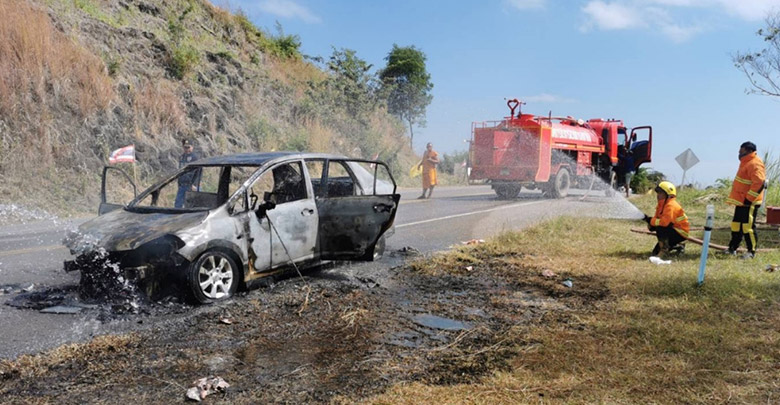 ไฟไหม้รถเก๋งนทท.บนเขาค้อโชคดีหนีทัน