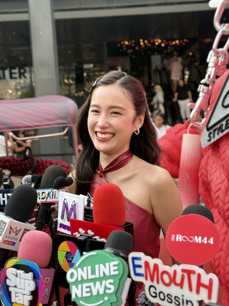 ทางด้านเส้นทางความรัก ย้อนกลับไปบอกเลยว่าเรารู้จักกันตอนช่วงคริสต์มาสปีที่แล้ว แล้วคริสต์มาสปีที่แล้วเหมือนขอกับซานต้าว่าอยากมีคนที่อยู่กับเราในคริสต์มาสอีกปีข้างหน้า แล้วเขาอาจจะได้ยินไง เขาก็เลยส่งอาร์บีมา คือวันนั้นวันแรกที่เราเจออาร์บี วันนั้นเป็นวันคริสต์มาส เราถ่ายละครเสร็จ แล้วเราก็ไปจับของขวัญคริสต์มาสกับเพื่อนๆ เป็นวันที่ได้เจอครั้งแรก ก็ยังไม่รู้จักว่าเขาชื่ออาร์บีหรืออะไร แต่ว่าเขาเป็นน้องชายของเพื่อน ก็เลยมีช่วงหนึ่งที่เราชวนกันไปทะเลมีทีมงาน ครอบครัว มันก็เลยน่าจะเริ่มตั้งแต่ตอนนั้นที่รู้สึกว่าชอบ จำไม่ได้เลยว่าตกหลุมรักช่วงไหน แต่ว่าตอนนั้นก็รู้สึกว่าเขาน่ารักดีและเป็นช่วงที่เราอยากฝึกภาษา ก็เลยเหมือนได้คุยเป็นเพื่อนกันก่อน ณ ตอนนั้น