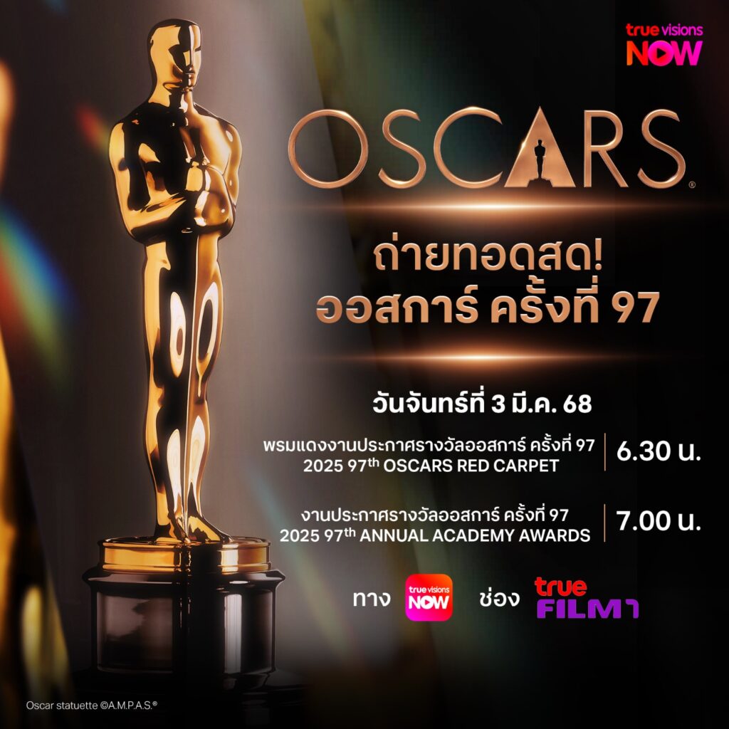 เหล่าแฟนหนังต่างเตรียมตัวกันเป็นที่เรียบร้อย พร้อมจะร่วมเชียร์หนังที่อยู่ในใจ สำหรับงานประกาศผลรางวัลออสการ์ หรืออคาเดมีอวอร์ดสครั้งที่ 97 และปีนี้ แอปพลิเคชัน ทรูวิชั่นส์ นาว รับหน้าที่ถ่ายทอดสด ให้สมาชิกได้รับชม ส่งตรงจากดอร์บี้เธียร์เตอร์แอลเอ ในเช้าวันจันทร์ที่ 3 มีนาคม 2568 ตั้งแต่เวลา 06.30 น. เป็นต้นไป ทางช่อง True Film 1 (115 ,222) หรือคลิกลุ้นไปกับรางวัลออสการ์ได้ที่ https://truevisions-now.onelink.me/RQwi/dernf7ec