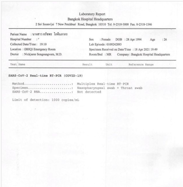 ก้อย อรัชพร โชว์ผลตรวจโควิด-19 รอบแรก ผลเป็นลบ หลังก่อนหน้านี้ถ่ายรายการกับ ป้อง ณวัฒน์ ที่ติดเชื้อโควิด-19