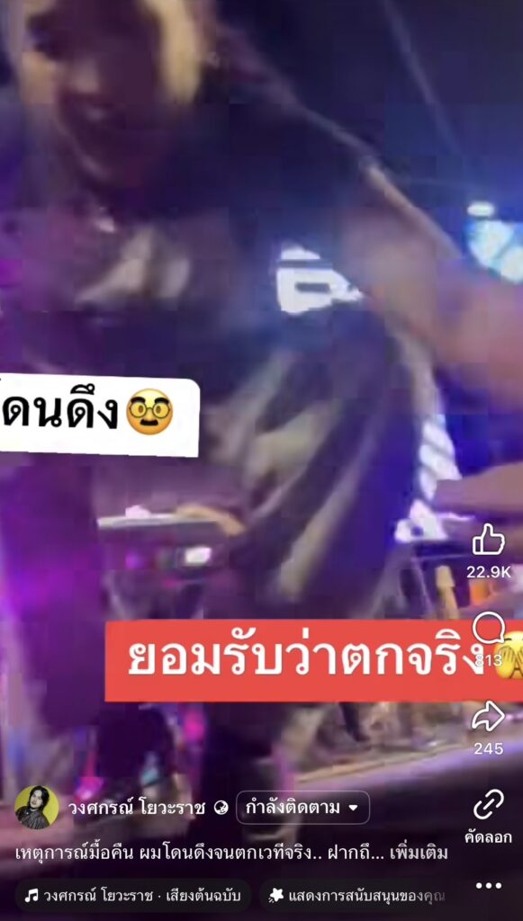 “เหตุการณ์มื่อคืน ผมโดนดึงจนตกเวทีจริง.. ฝากถึงแฟนคลับของศิลปินทุกท่าน ขอบคุณที่มาให้กำลังใจหน้าเวที แต่ช่วยเซฟศิลปินด้วยนะครับ เพราะบางท่านอาจจะเป็นผู้หญิง และอาจไม่แข็งแรงเหมือนผม หากพลาดลงมาผิดท่าหรือกระทบกับเหล็กหน้าเวที ถือว่าอันตรายมากครับ..”