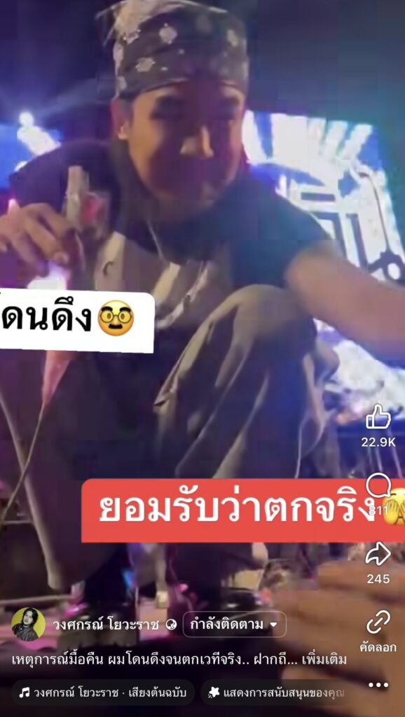 ขอย้ำอีกทีภาพนี้เป็นภาพจริงไม่ได้ถ่ายทำคนที่เห็นในภาพก็เป็นคนจริงๆไม่ใช่ตัวแสดง เมื่อ “ลำเพลิน วงศกร” นำภาพบรรยากาศหน้าเวทีมาเตือนเป็นอุทาหรณ์ หลังถูกดึงจนตกเวทีขณะทำการแสดง เล่นเอาหลายคนเป็นห่วง จนเจ้าตัวต้องออกมาโพสต์เตือนสติ