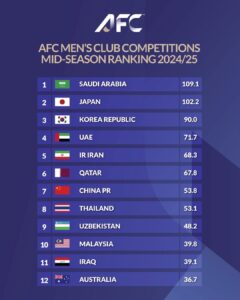 สมาพันธ์ฟุตบอลแห่งเอเชีย หรือ เอเอฟซี แจ้งผลการจัดอันดับ AFC Club Competitions Ranking ประจำฤดูกาล 2024/25 เพื่อจัดสรรโควต้า การแข่งขันฟุตบอลชิงแชมป์สโมสรเอเชีย ฤดูกาล 2026/27