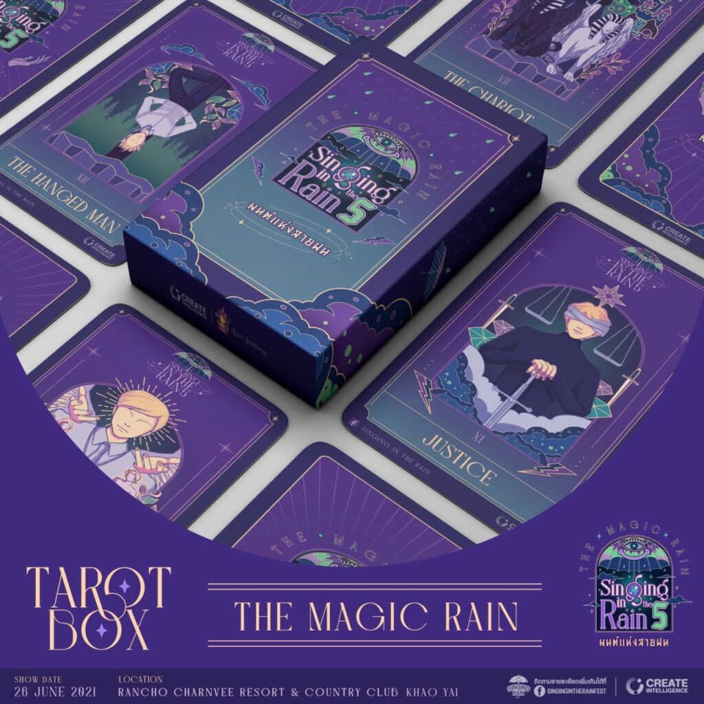 สำหรับผู้ไม่อยากเดียวดายกับความเหงาของฤดูฝน เตรียมลงทะเบียนจองสิทธิ์ซื้อบัตร Singing in The Rain Music Festival ครั้งที่ 5 โปร Early Rain ในราคาเพียง 999 บาท และ 1,818 บาท สำหรับบัตรคู่ เพียงเพื่อนๆคลิก www.singingintherainfest.com และลงทะเบียนตั้งแต่วันนี้ถึงวันศุกร์ที่ 23 เมษายน 2564 รับทันทีชุดไพ่ทาโร่ต์ ‘The Magic Rain’ ไพ่ทาโร่ต์ชุดพิเศษที่ออกแบบเฉพาะงาน Singing in The Rain สำหรับทำนายโชคชะตาในฤดูฝนให้แก่ผู้ที่ได้ครอบครอง งานนี้!! เตรียมชวนเพื่อน เก็บกระเป๋าหยิบเสื้อกันฝน แล้วมาพบกัน ในเทศกาลดนตรีฤดูฝนที่สนุก สุดมันส์!! ในวันเสาร์ที่ 26 มิถุนายน 2564 ณ แรนโช ชาญวีร์ รีสอร์ท แอนด์ คันทรีคลับ, เขาใหญ่, นครราชสีมา ติดตามข้อมูลของงานได้ที่ www.facebook.com/singingintherainfest