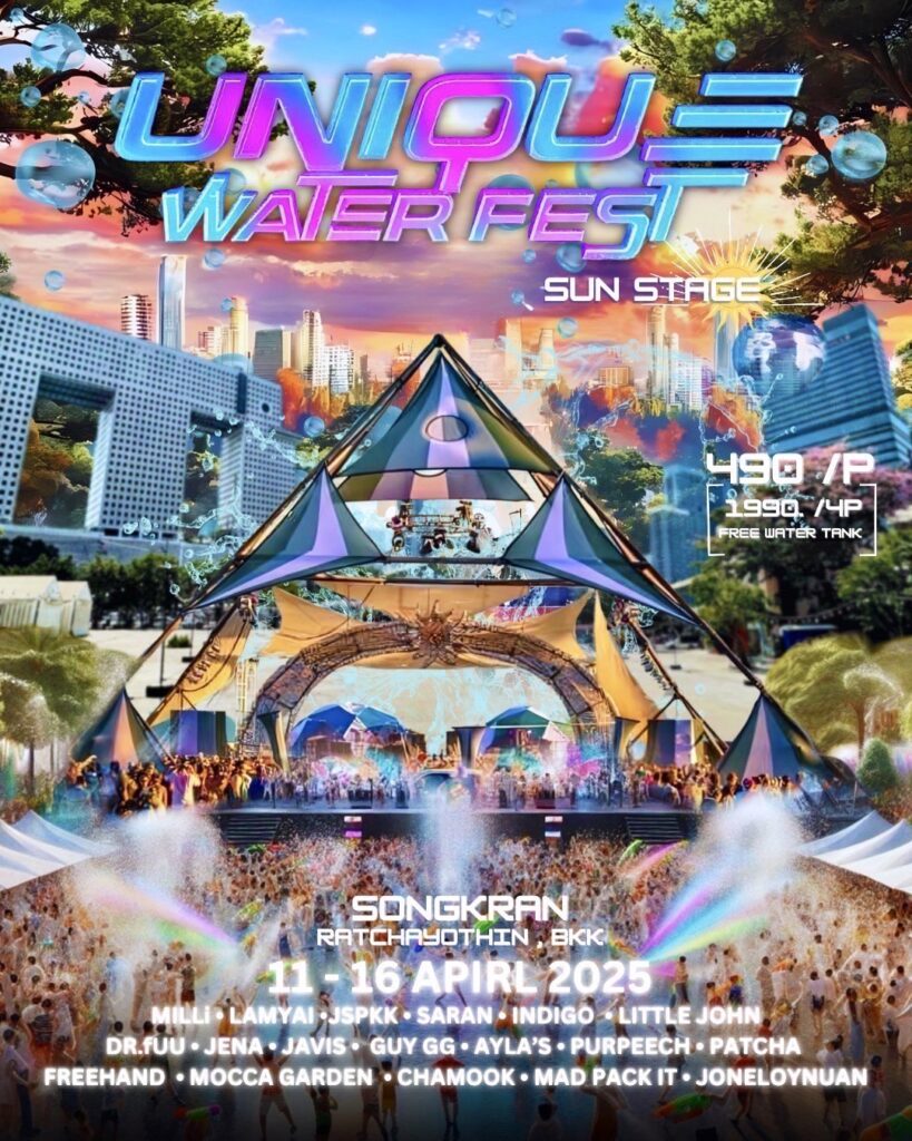 ปลุกสัญชาตญาณ Party ในตัวคุณ กับงาน UNIQUE WATER FEST 2025 มหาสงกรานต์ 6 วันเต็ม กับมหกรรมดนตรี EDM-POP-DANCE-HIPHOP-ROCK- COUNTRY หลากหลายแนวเพลง ผ่านสายน้ำที่ยิ่งใหญ่ที่สุดในย่านรัชโยธิน กับพื้นที่ยิ่งใหญ่ใจกลางกรุงเทพมหานคร UNIQUE WATER FEST 2025 เทศกาลสงกรานต์
