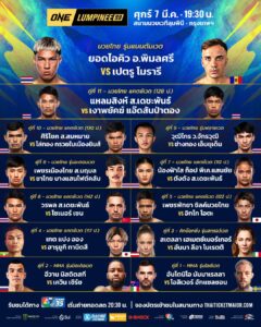 โปรแกรมการแข่งขันทุกคู่ศึก ONE ลุมพินี 99
