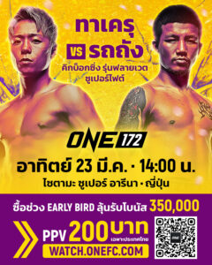 แฟนกีฬาการต่อสู้ใน 195 ประเทศทั่วโลก เตรียมตัวรับความมันครั้งประวัติศาสตร์ ในศึก ONE 172 ที่จัดหนักขนนักสู้ระดับซูเปอร์สตาร์มาแลกเดือดกันถึง 14 คู่ บนดินแดนอาทิตย์อุทัย โดยมีเข็มขัดแชมป์โลก ONE เป็นเดิมพันมากถึง 5 เส้นด้วยกัน โดยจะถ่ายทอดสดจากสังเวียน ไซตามะ ซูเปอร์ อารีนา ในวันอาทิตย์ที่ 23 มี.ค.นี้ เริ่มเวลา 14.00 น.