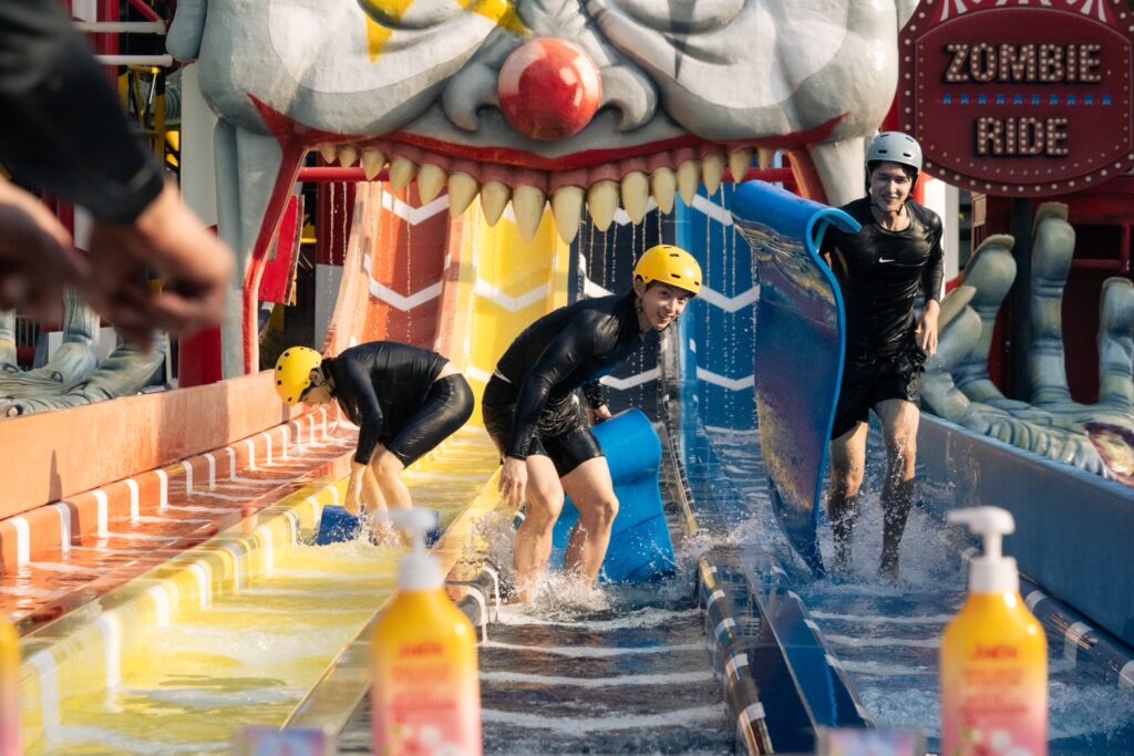 ใน EP.6 ประเดิม Challenge แรกบนเครื่องเล่นธีม Zombieland สไลเดอร์ที่มีความสูงที่สุดของสวนน้ำแห่งนี้ ซึ่งเหมาะมากกับการแข่งขันวัดความจำ โดยผู้เข้าแข่งขันทั้ง 3 ทีมจะต้องส่งตัวแทนขึ้นไปบนสไลเดอร์ เพื่อท่องประโยคที่เป็นโจทย์ให้ได้ และเมื่อสไลด์ลงมา ก็ต้องมาบอกประโยคนั้นกับเพื่อนร่วมทีม โดยห้ามผิดแม้แต่คำเดียว วัดกันไปเลยว่า ระหว่างลื่นลงมากับสไลด์เดอร์ ทีมไหนจะทำประโยคอะไรตกไว้ระหว่างทาง จำคำไหนกันไม่ได้บ้าง แต่บอกเลยว่างานนี้ไม่มีหมู เพราะสไลเดอร์ที่ต้องลื่นลงมา มีทั้งความชัน ความเสียว และความมืด และประโยคที่เป็นโจทย์ซึ่งผู้เล่นแต่ละคนได้รับนั้น เข้าขั้นยากอยู่ไม่น้อย แค่ให้จำปกติยังไม่ง่ายเลย 12 หนุ่มจะทำได้ไหม จะจำได้หรือเปล่ามาวัดกัน