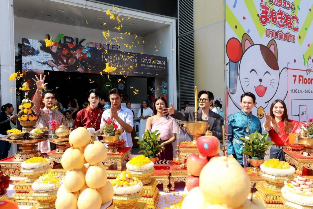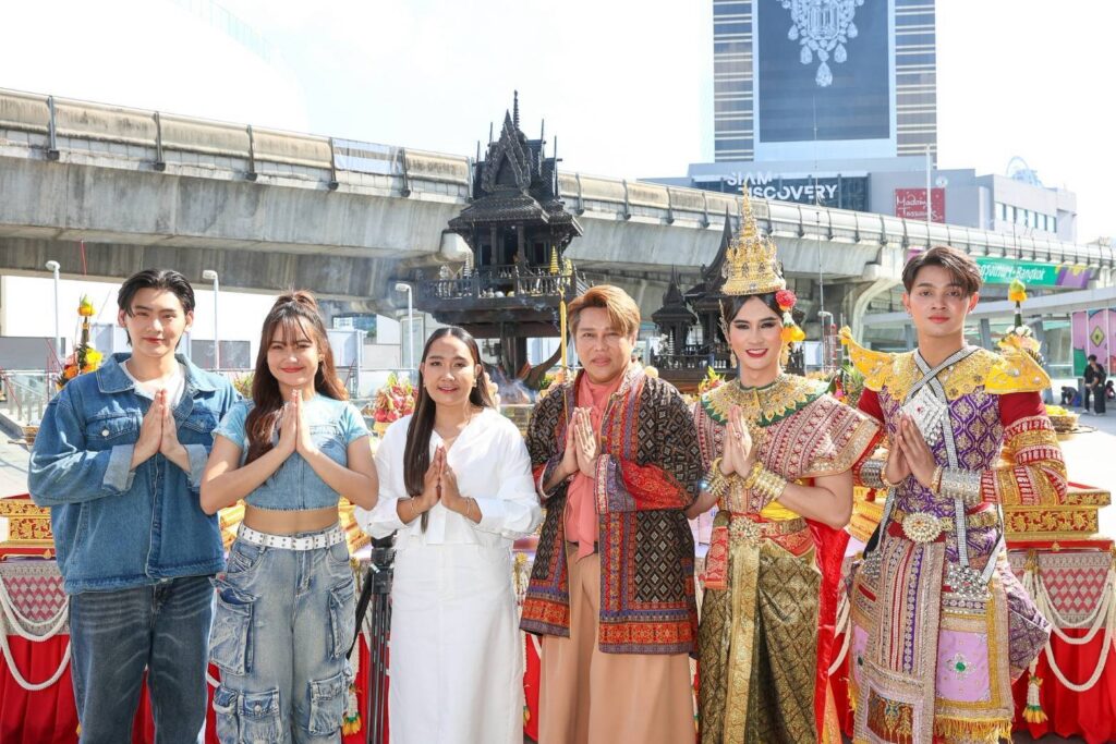 บรรยากาศในพิธีบวงสรวงเต็มไปด้วยความคึกคักจากเหล่านักแสดงทั้งรุ่นใหญ่ รุ่นเด็ก รวมถึงเหล่าแฟนคลับ และสื่อมวลชนอย่างคับคั่ง ก่อนเริ่มพิธีบวงสรวงอย่างเป็นทางการ มีการแสดงโชว์จากสองหนุ่มคู่จิ้นสุดฮอต “เล้ง-แสตมป์” โชว์รำละครนอกเรื่อง “สังข์ทอง” ตอน “รจนาเลือกคู่” ซึ่งทั้งสองหนุ่มก็รำได้อย่างสวยงามสะกดจิตสะกดใจคนในงานได้เป็นอย่างดี