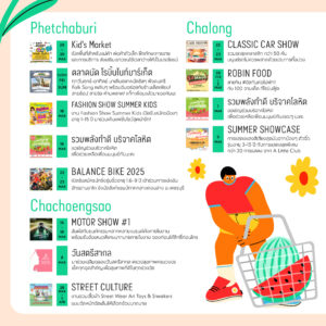 29 มี.ค. 68 – 30 มี.ค. 68 Kid’s Market เปิดตลาดนัดสุดน่ารักสำหรับพ่อค้าแม่ค้าตัวน้อย ฝึกทักษะการขายและการบริการ ส่งเสริมให้เยาวชนได้ใช้เวลาว่างให้เป็นประโยชน์