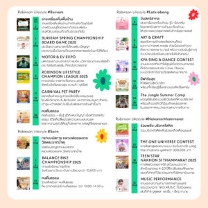 ศูนย์การค้าโรบินสันไลฟ์สไตล์ ในเครือเซ็นทรัล รีเทล ชวนปลุกพลังความสนุกไปกับประสบการณ์สุดพิเศษต้อนรับซัมเมอร์ไปกับธีม Robinson Lifestyle Summer Energy 2025 ตลอดเดือนมีนาคมนี้ กับอิเวนต์ที่ตอบโจทย์ทุกไลฟ์สไตล์สำหรับสมาชิกทุกคนในครอบครัว ทั้งอิเวนต์ สนับสนุนให้เยาวชนใช้เวลาว่างในช่วงปิดเทอมให้เป็นประโยชน์ ไม่ว่าจะเป็นการแข่งขันด้านกีฬา ร้องเพลง ดนตรี คอสเพลย์ คัฟเวอร์แดนซ์ รวมไปถึง งานเทศกาลดนตรี รับลมร้อน พร้อมเอาใจสายชิมกับ มหกรรมอาหารจากร้านเด็ดร้านดัง นอกจากนี้ ยังมีอิเวนต์เอาใจน้องๆ หนูๆ และ คนรักสัตว์เลี้ยง อีกมากมาย ที่จะเติมเต็มความสุขตลอดช่วงซัมเมอร์นี้ พลาดไม่ได้! พบกันตลอดเดือนมีนาคมนี้ ที่โรบินสันไลฟ์สไตล์ทุกสาขาทั่วประเทศ