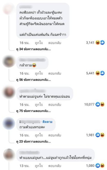 คำถามนี้อาจจะดูเหมือนตั้งขึ้นเพื่อสอบถามธรรมดา แต่กลับกลายเป็นการเรียกความสนใจจากชาวเน็ตที่เข้ามาแสดงความคิดเห็นไปในทิศทางเดียวกัน เช่น “คงฟ้องหย่า ทั้งผัวและชู้นะคะ”, “ทำตามแม่จูนค่ะ ไม่ขาดทุนแน่นอน” และ “ถามตัวเองหรอคะ” ซึ่งสะท้อนถึงประเด็นที่เกิดขึ้นในอดีตของเขากับภรรยา