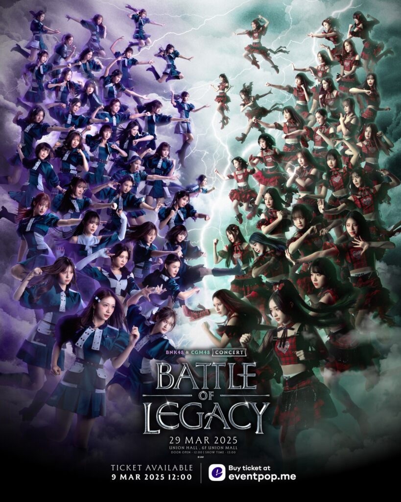 BNK48 & CGM48 Concert (BATTLE OF LEGACY) เปิดจำหน่ายบัตรตั้งแต่วันนี้ ผ่านทางช่องทาง www.eventpop.me ราคาบัตร 4,999 / 2,999 / 2,699 / 2,299 / 1,199 / 999