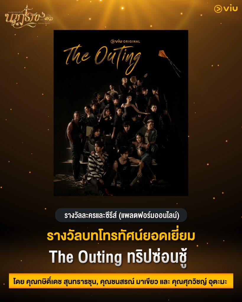 – The Outing ทริปซ่อนชู้ โดย คุณกษิดิ์เดช สุนทรารชุน, คุณชนสรณ์ มาเขียว และ คุณศุภวิชญ์ อุตะมะ Viu Thailand (วิว ไทยแลนด์) ออกอากาศทางแอปพลิเคชัน Viu