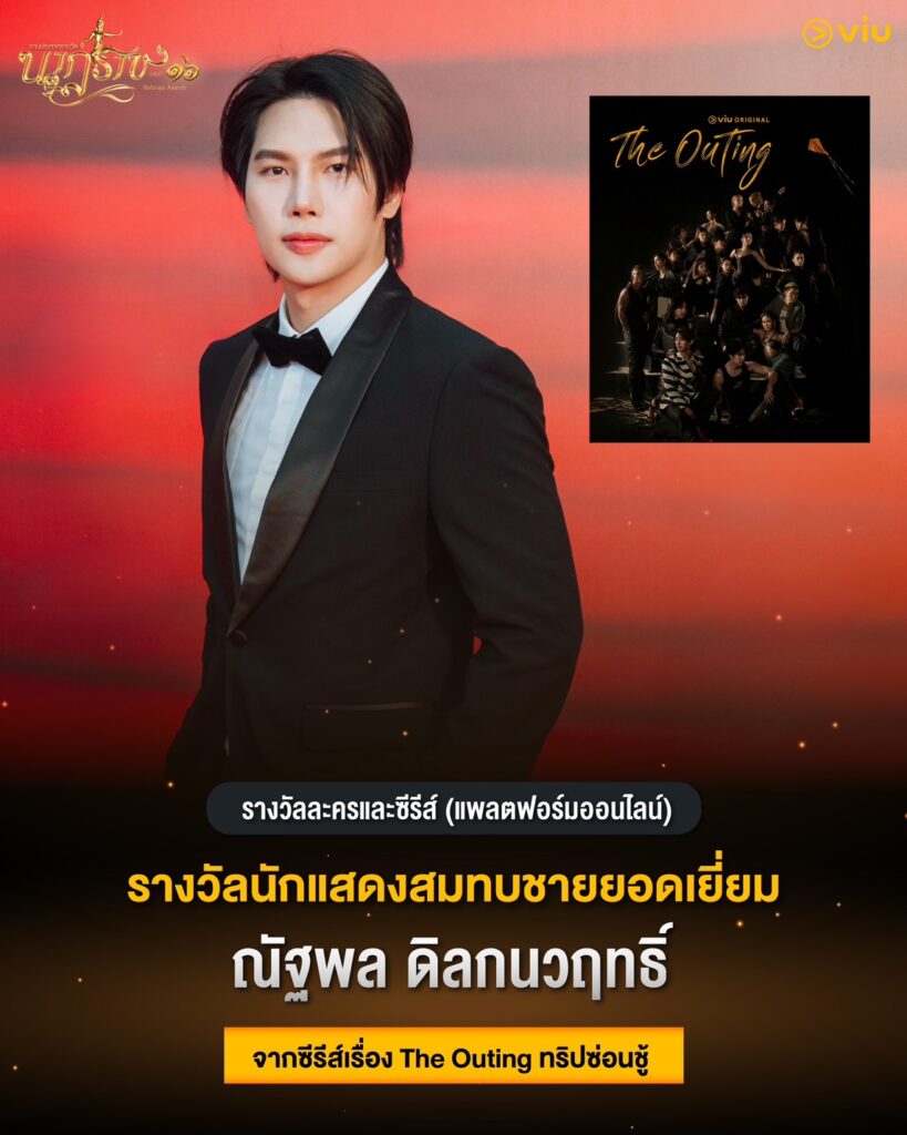 – ณัฐพล ดิลกนวฤทธิ ได้เข้าชิงจากซีรีส์เรื่อง The Outing ทริปซ่อนชู้ Viu Thailand (วิว ไทยแลนด์) ออกอากาศทาง. แอปพลิเคชัน Viu