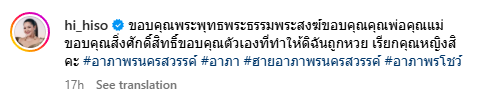ซึ่งเมื่อถึงเวลาประกาศผลสลากกินแบ่งรัฐบาล “ฮาย” ก็ได้โพสต์คลิปวิดีโอที่เจ้าตัวนั้นถือใบสลากถือเต็มมือ มีทั้งที่ถูกและไม่ถูก แต่ใบที่ถูกนั้นเจ้าตัวนับโชว์เลยว่ามีทั้งหมด 100 ใบ พร้อมเขียนข้อความระบุว่า ขอบคุณพระพุทธพระธรรมพระสงฆ์ขอบคุณคุณพ่อคุณแม่ขอบคุณสิ่งศักดิ์สิทธิ์ขอบคุณตัวเองที่ทำให้ดิฉันถูกหวย เรียกคุณหญิงสิคะ #อาภาพรนครสวรรค์ #อาภา #ฮายอาภาพรนครสวรรค์ #อาภาพรโชว์”